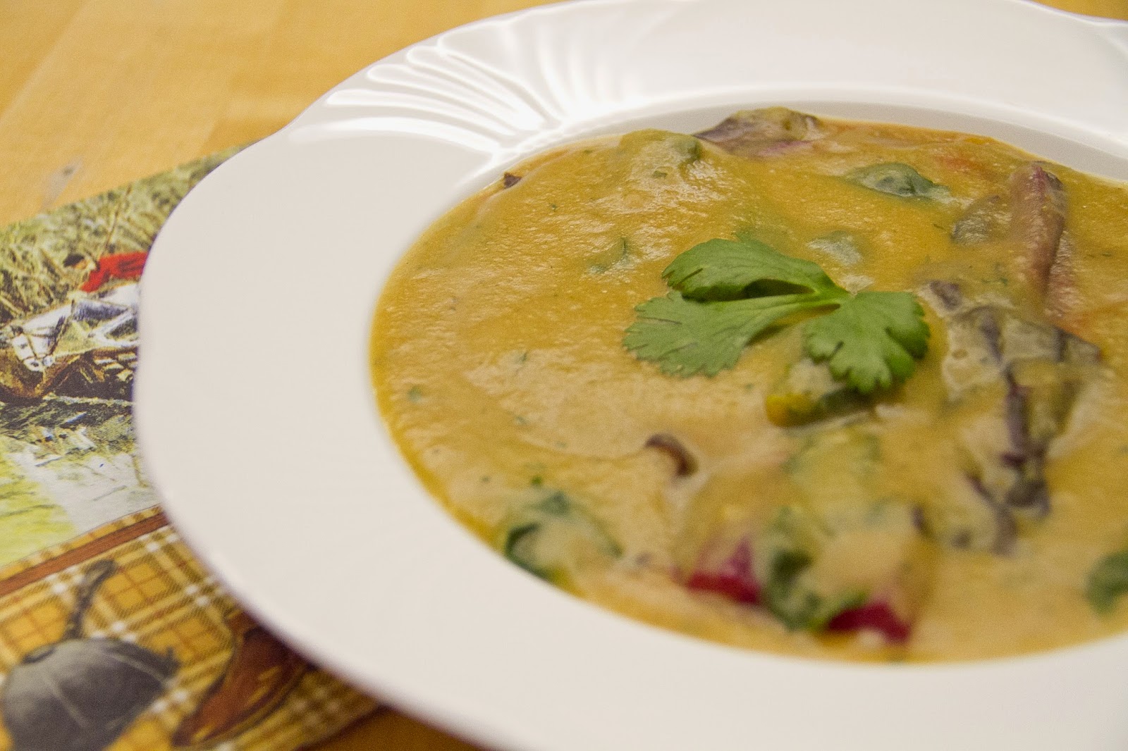 cook the lentils and the branchs of the savoy for 15 minutes, add garlic, onion and ginger and simmer for five more minutes. grab your hand mixer and purée until you have a noce creamy texture. cut the savoy leaves into pieces and add with the coriander and parsley. simmer it for about 8 minutes, then fill into bowls &enjoy <3